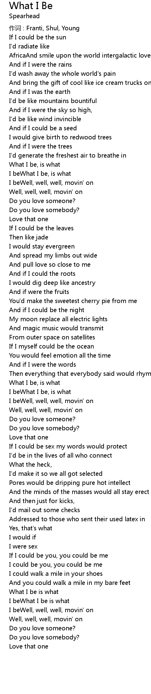 | Song | What I Be |