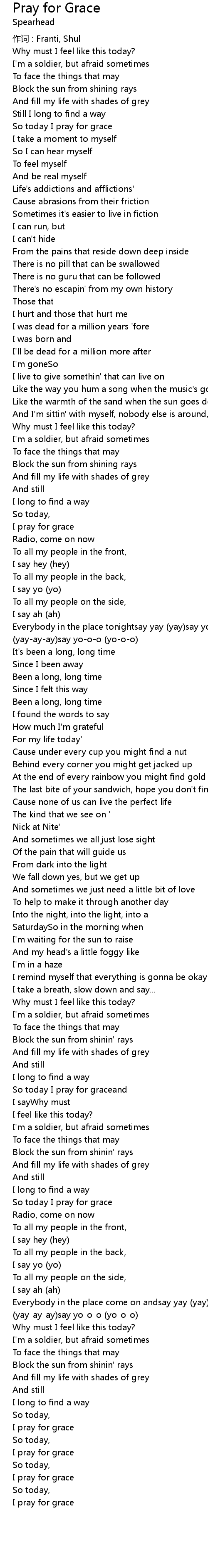 | So today I pray for grace | |
