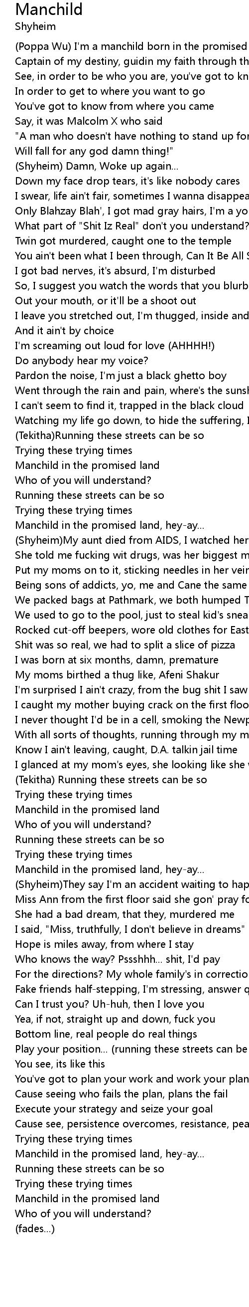 | [00:00.300] | (Poppa Wu) I'm a manchild born in the promised land |