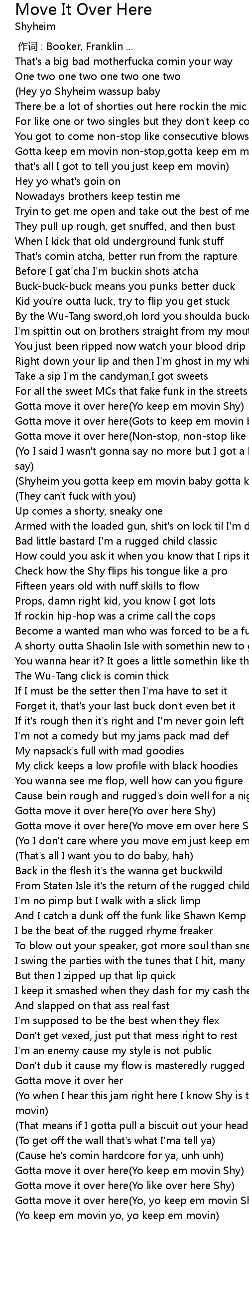 | [01:01.27] | Gotta move it over here Yo keep em movin Shy |
