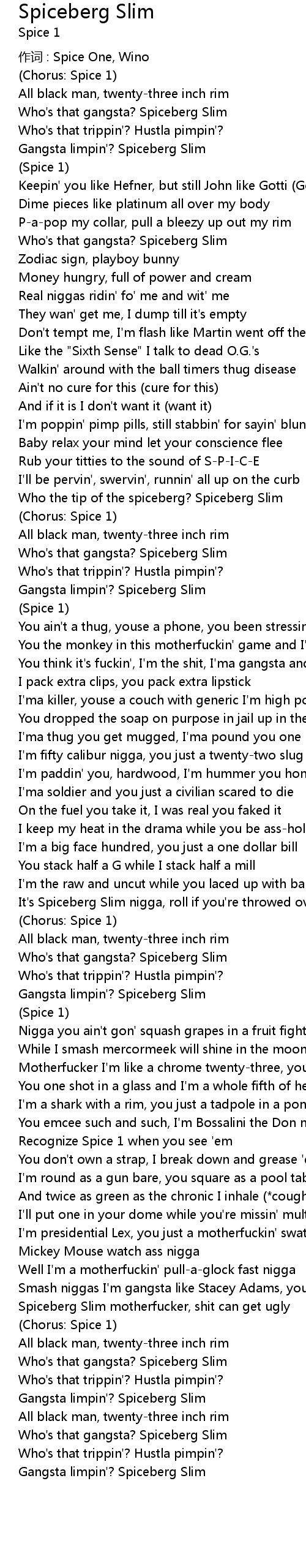 | It's Spiceberg Slim nigga, roll if you're throwed over | |