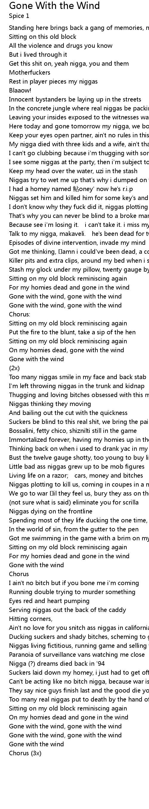 | On my homies dead, gone with the wind | |