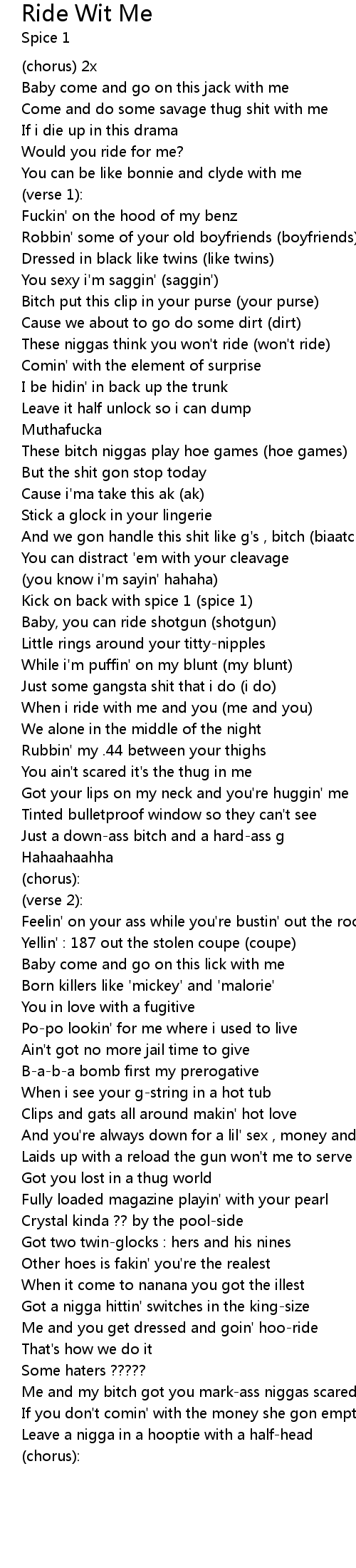 Me and you get dressed and goin' hoo-ride |
