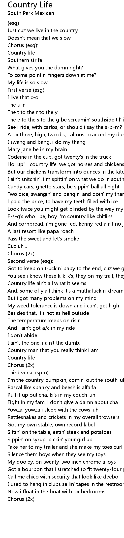 | E-s-g's who i be, boy i'm country like chitlins | |