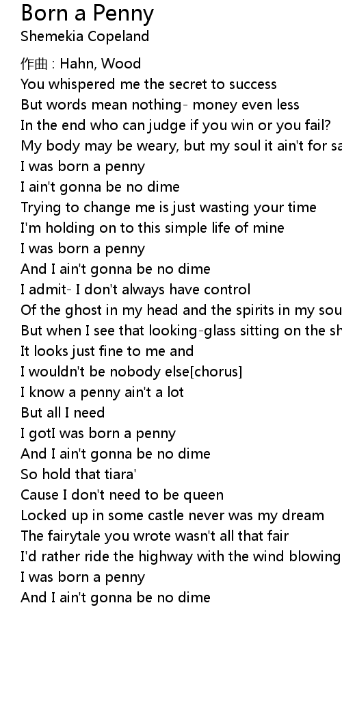 | Song | Born a Penny |