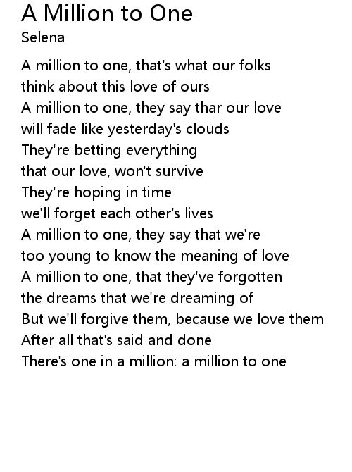 A million to one, they say thar our love |