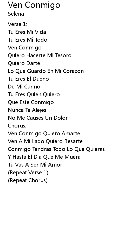 | Song | Ven Conmigo |