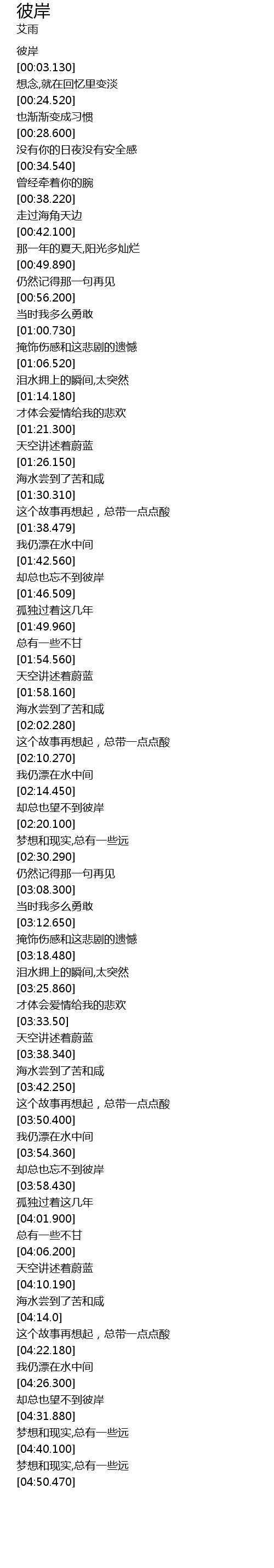 | [03:54.650] | 却总也忘不到彼岸 |