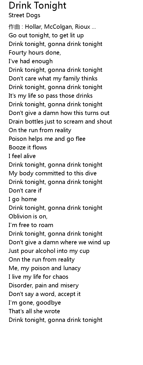 | Drink tonight, gonna drink tonight | |