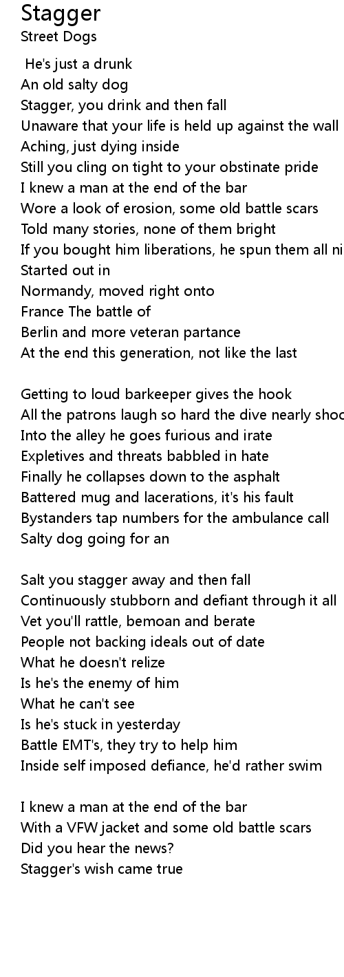Stagger, you drink and then fall |