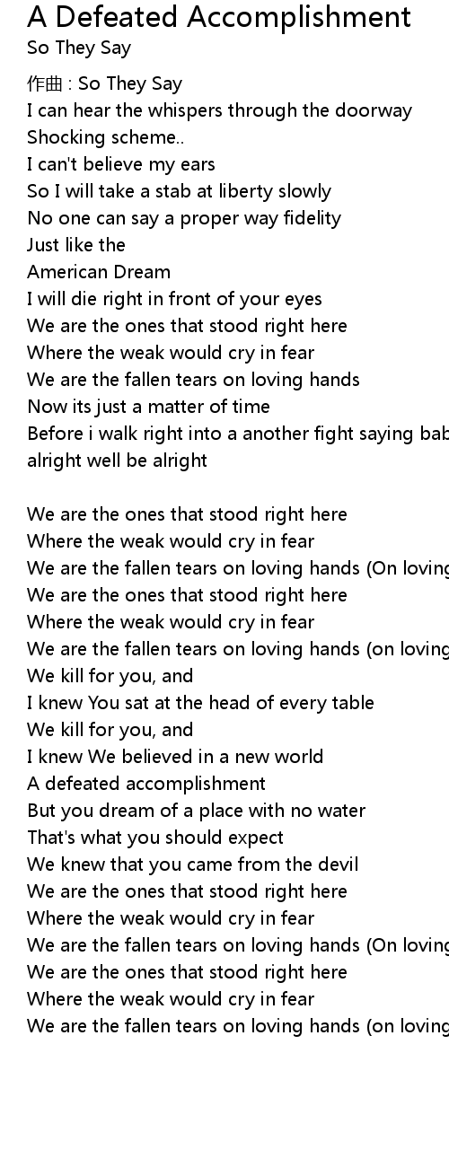 | Song | A Defeated Accomplishment |