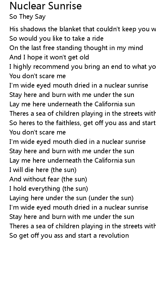 I'm wide eyed mouth dried in a nuclear sunrise |