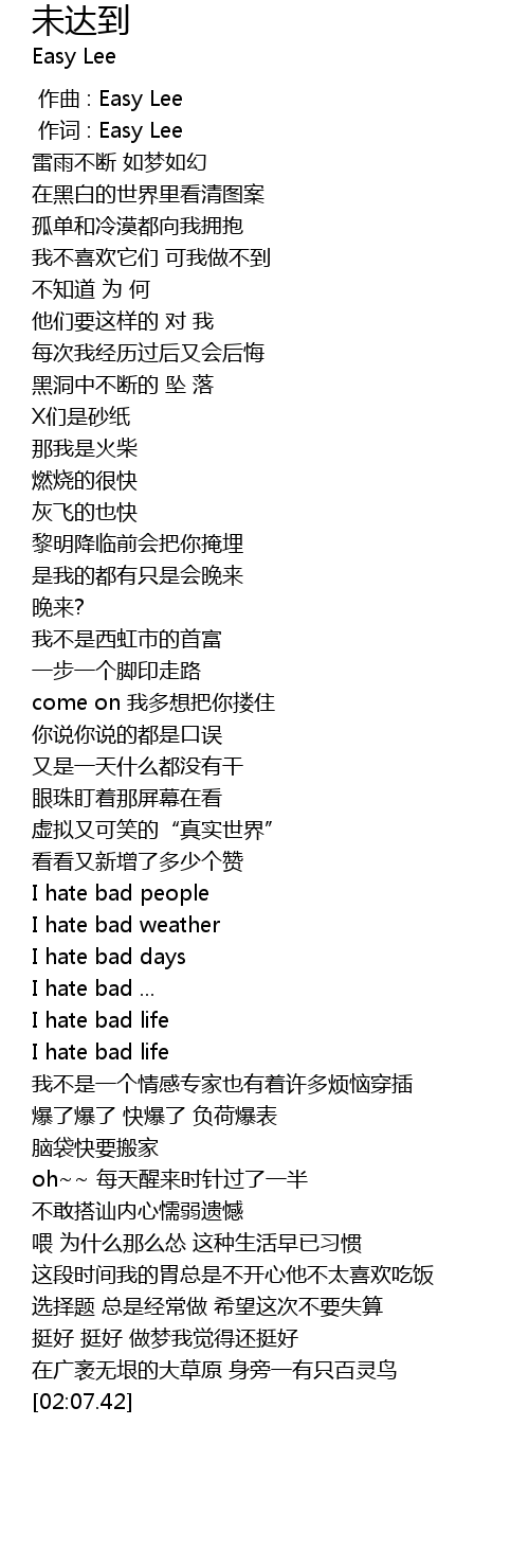 | [01:29.82] | I hate bad life |