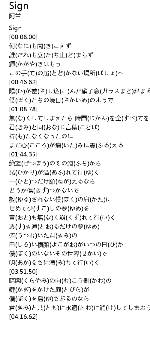 | [03:39.65] | 僕(ぼく)のいないその世界(せかい)で 明(あか)るさに満(み)ちて行(い)く |