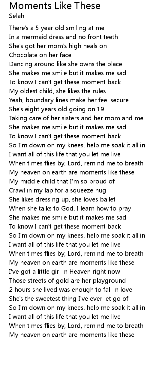 My heaven on earth are moments like these |