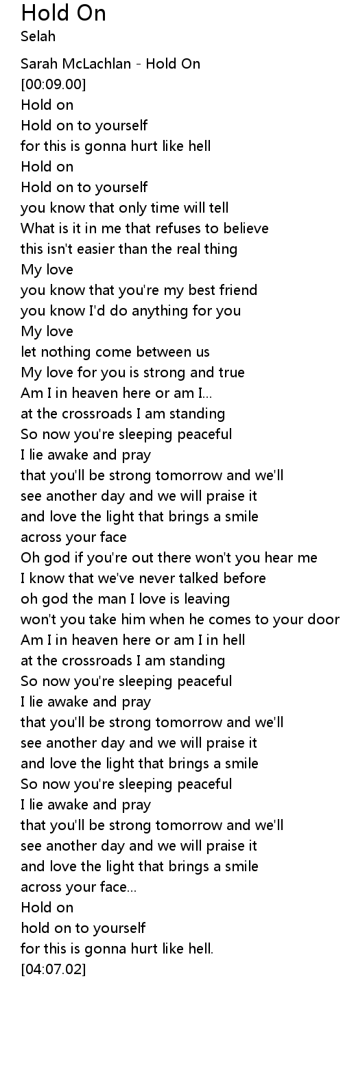 | [00:02.00] | Sarah McLachlan - Hold On |