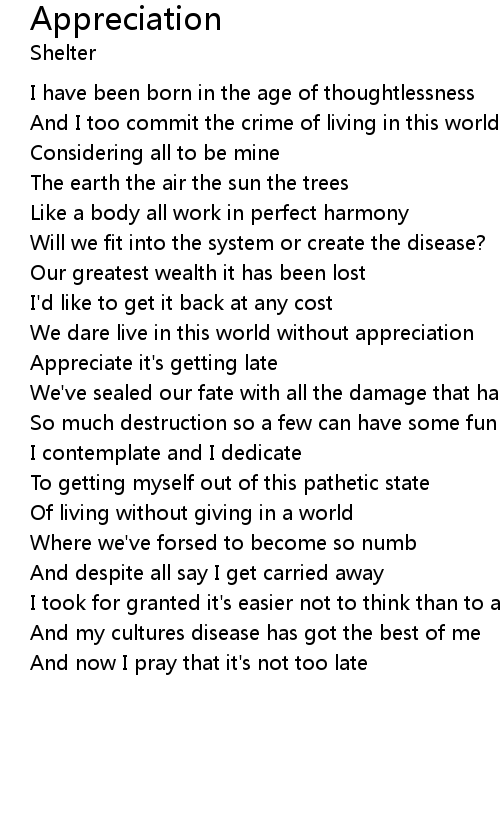 | We dare live in this world without appreciation | |