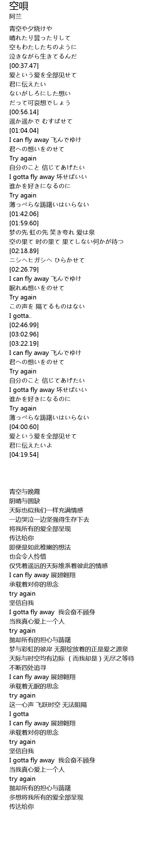 | [03:23.15] | I can fly away 飞んでゆけ |