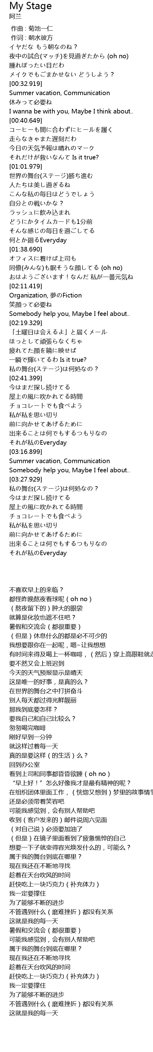 | [02:41.239] | 私の舞台(ステージ)は何処なの? |