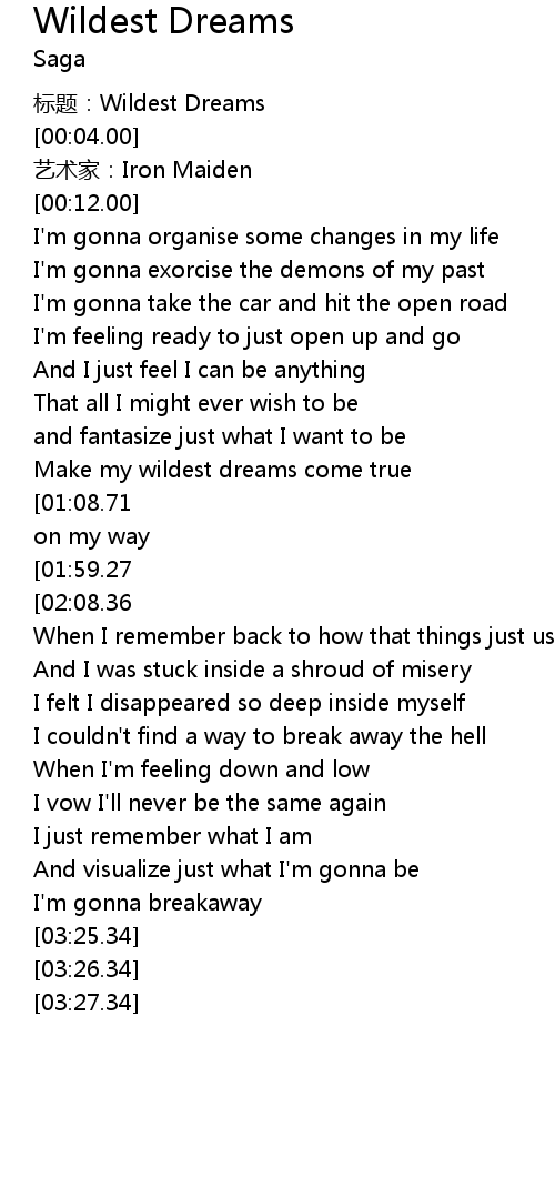 | [00:00.00] | 标题:Wildest Dreams |