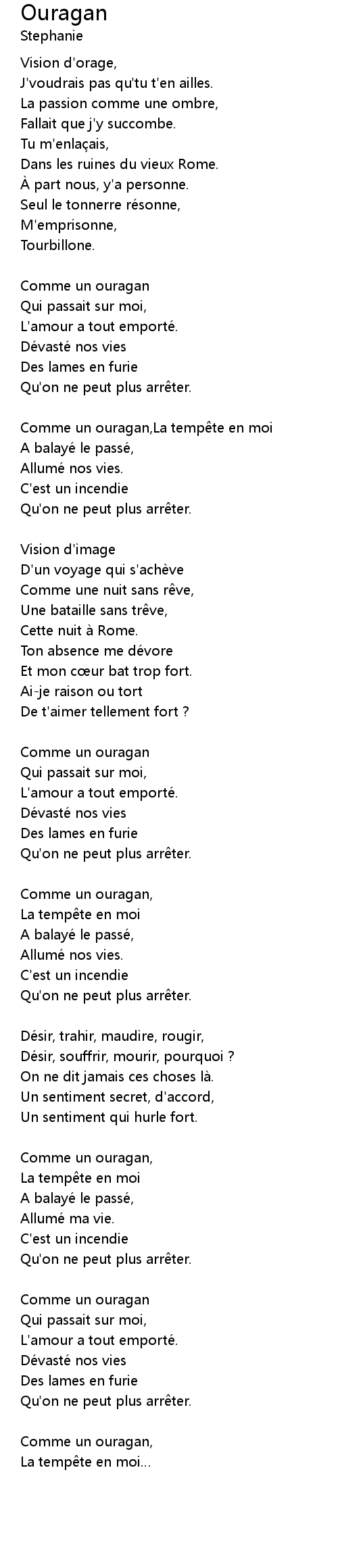 | Comme un ouragan, | |
