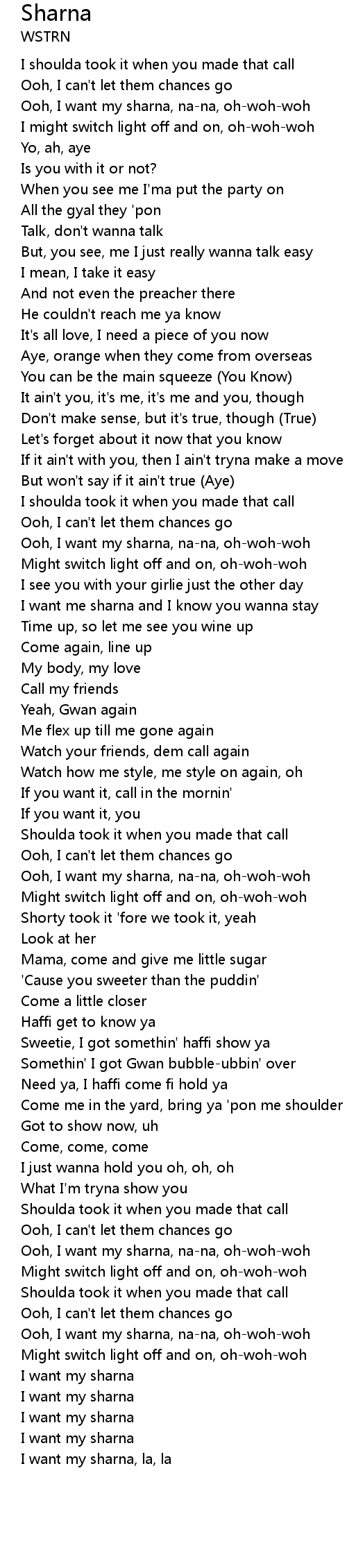 | [01:54.45] | Ooh, I want my sharna, na-na, oh-woh-woh |