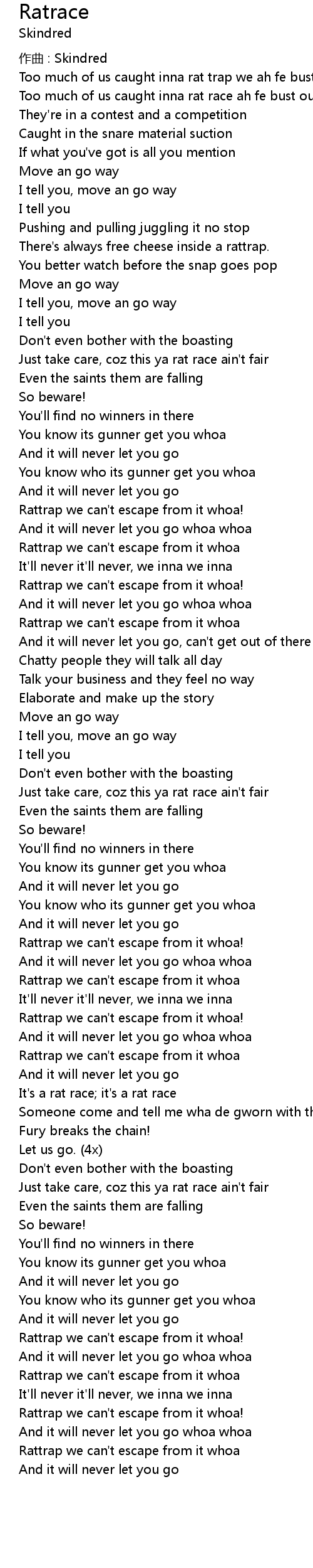 | Too much of us caught inna rat race ah fe bust out ah dat | |