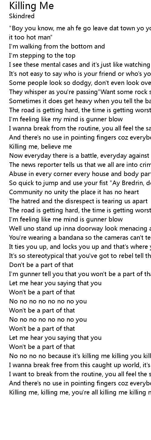 Killing me, killing me, you're all killing me killing me |