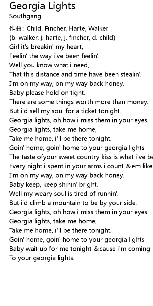 | Georgia lights, oh how i miss them in your eyes. | |