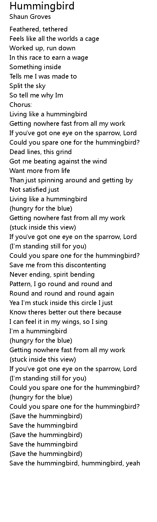 Save the hummingbird, hummingbird, yeah |