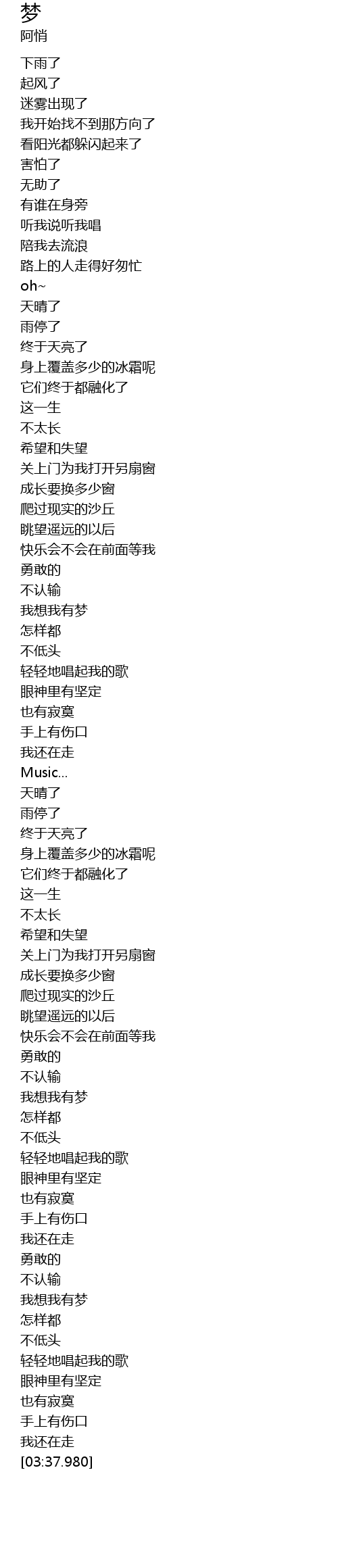 | [03:00.510] | 我想我有梦 |