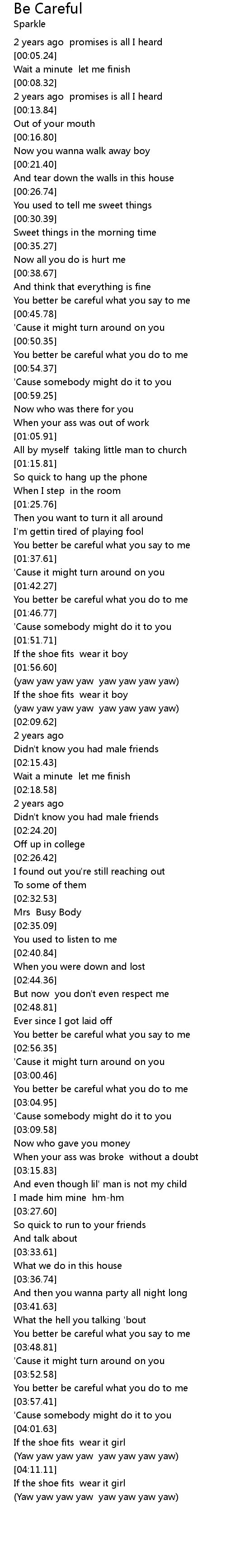| [03:01.43] | You better be careful what you do to me |