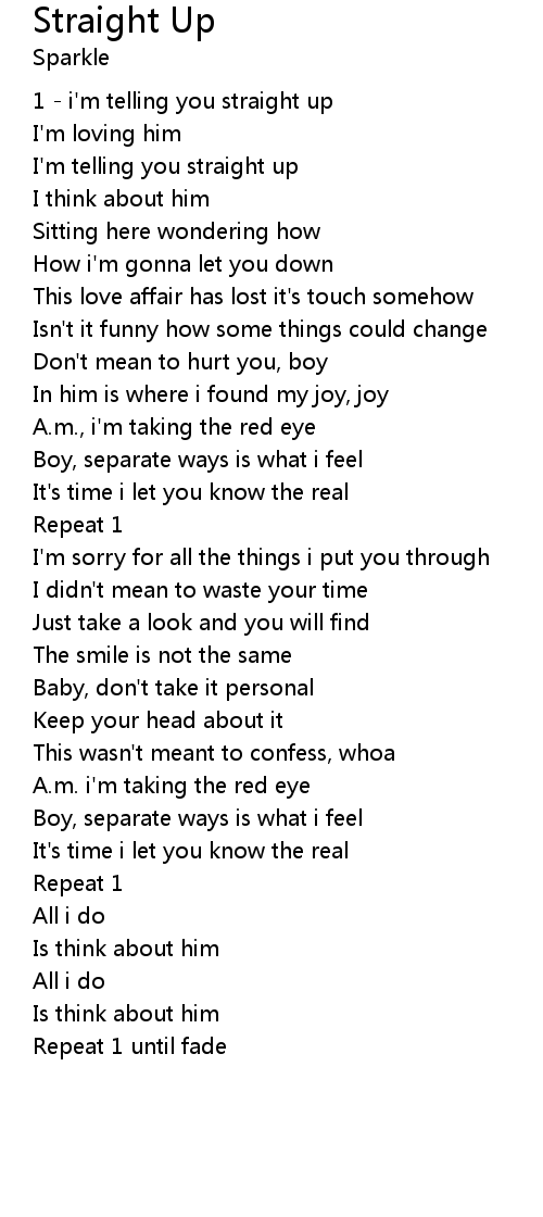 | 1 - i'm telling you straight up | |