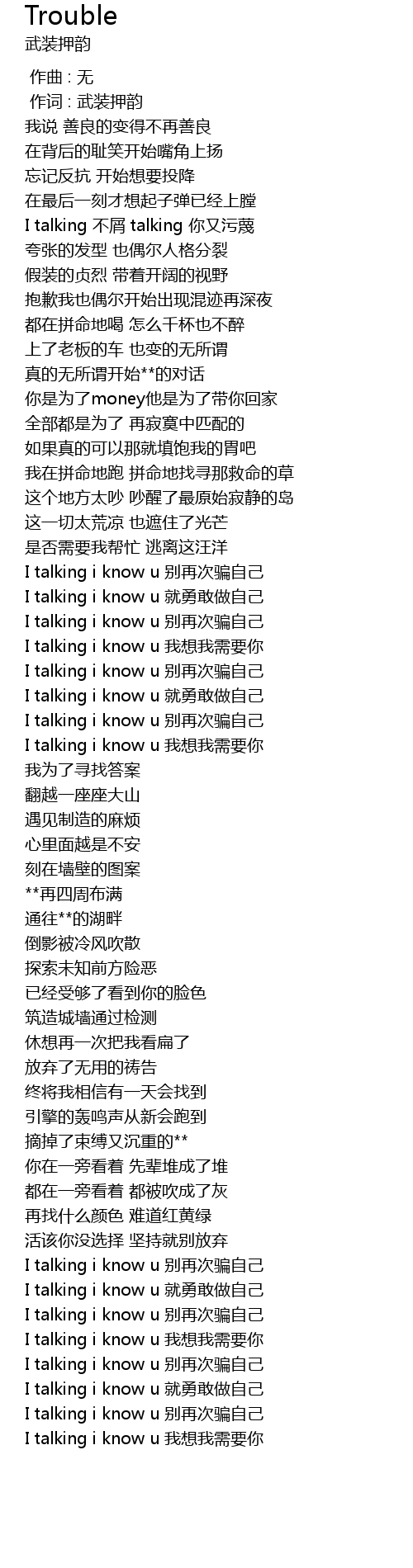 | [02:30.59] | I talking i know u bié zài cì piàn zì jǐ |