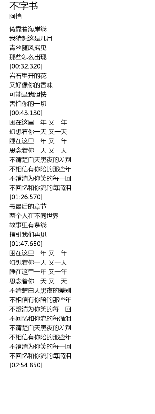 | [02:38.680] | bù xiāng xìn yǒu nǐ péi de nèi xiē nián |