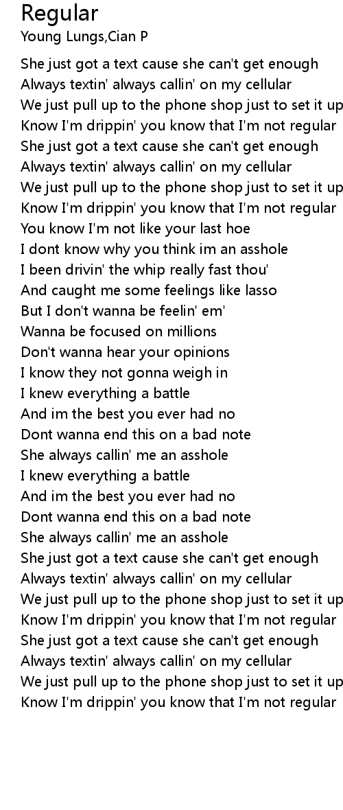 | [00:42.24] | Always textin' always callin' on my cellular |
