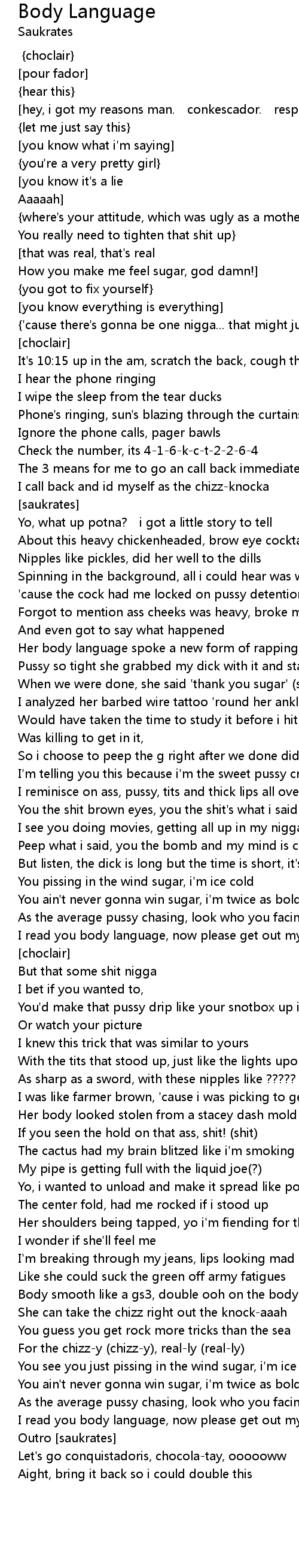 | Her shoulders being tapped, yo i'm fiending for the cat | |