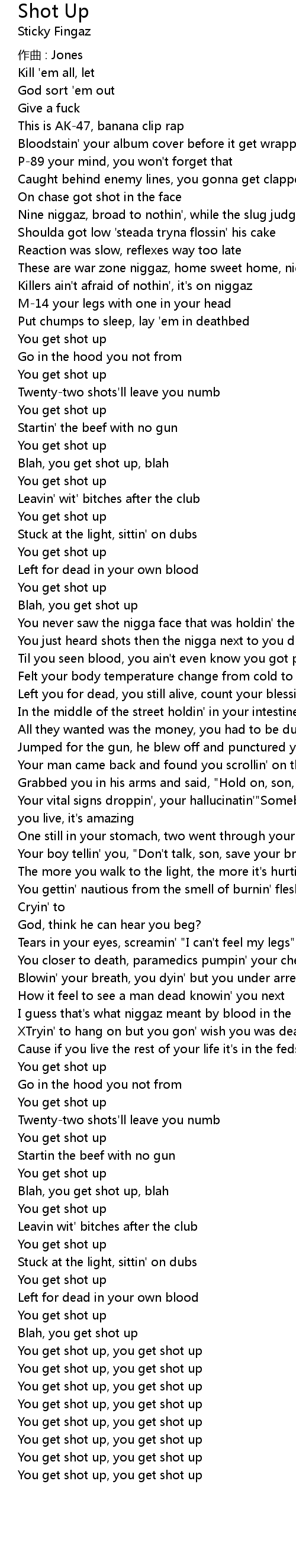 | You just heard shots then the nigga next to you dropped' | |