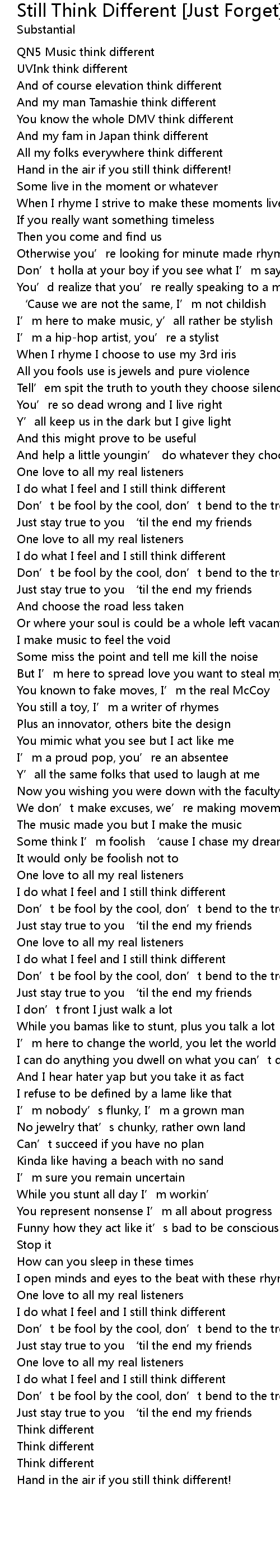 | Song | Still Think Different [Just Forget] |