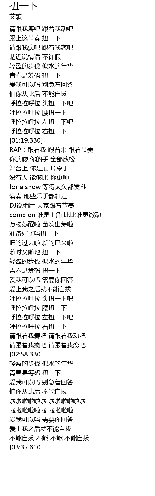 | [00:37.160] | 跟上这节奏 扭一下 |
