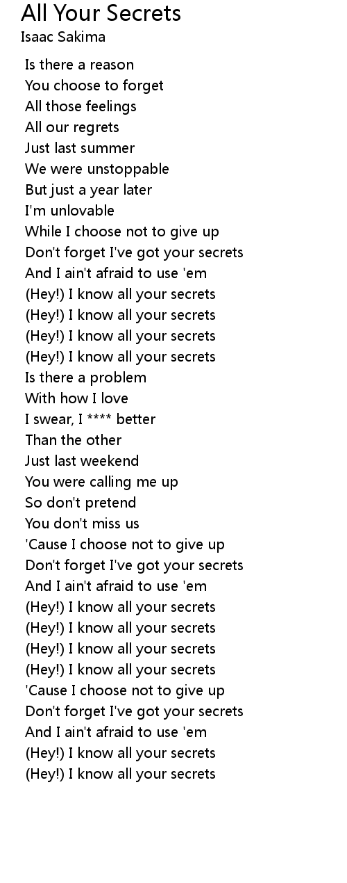 Don't forget I've got your secrets |