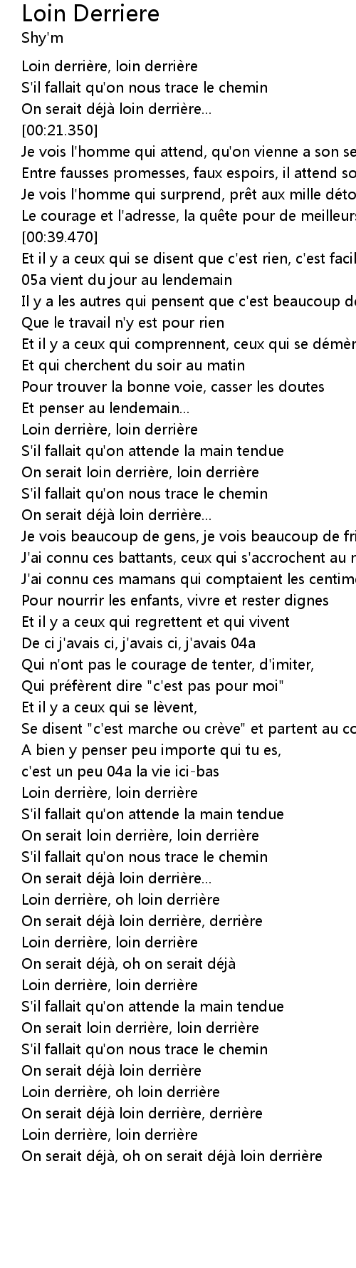 | [01:01.470] | Loin derriè re, loin derriè re |