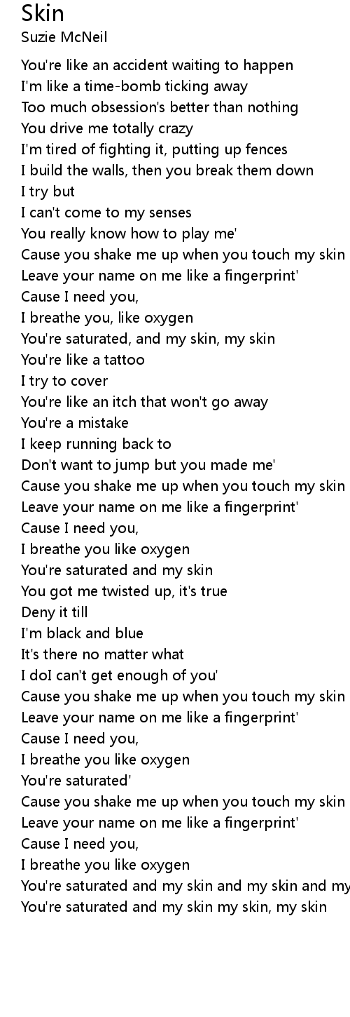 You're saturated and my skin my skin, my skin |