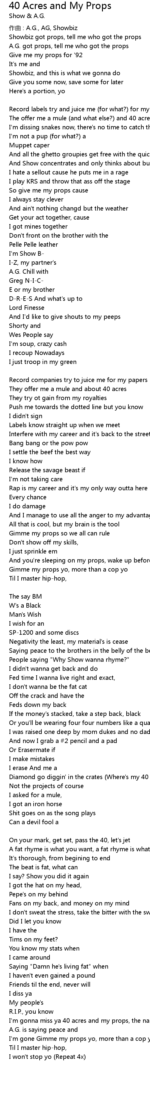 | I' m gonna miss ya 40 acres and my props, the name of the song | |