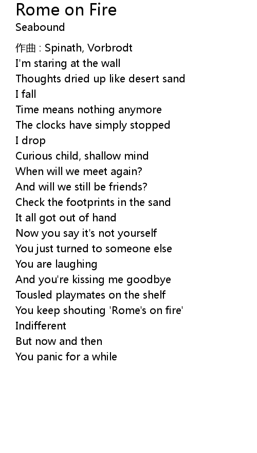 | Song | Rome on Fire |