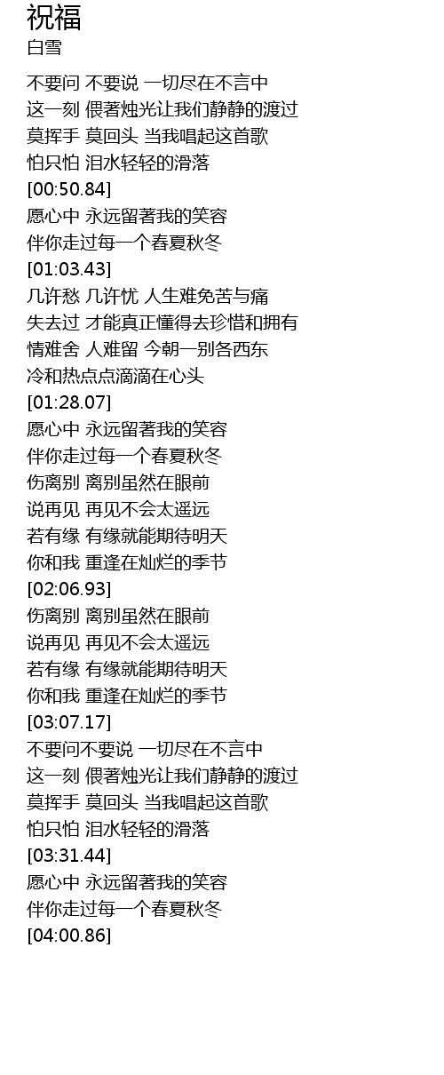 | [03:32.44] | 愿心中 永远留著我的笑容 |