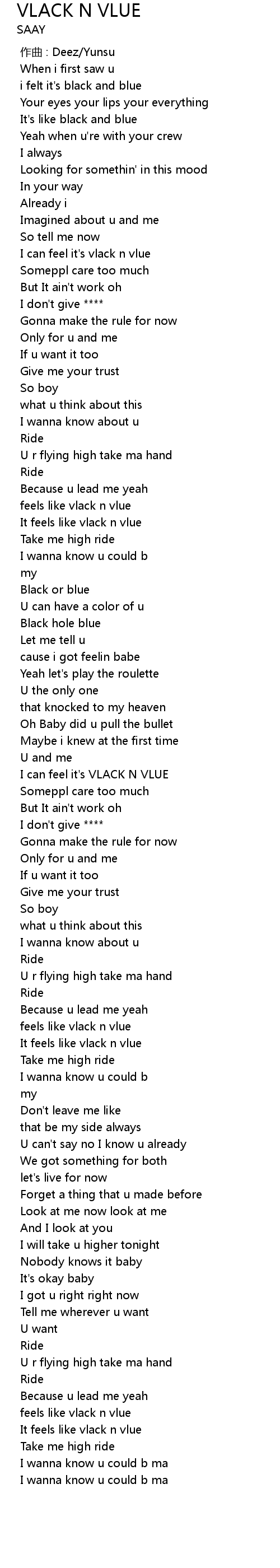 | [01:33.822] | I can feel it' s VLACK N VLUE |