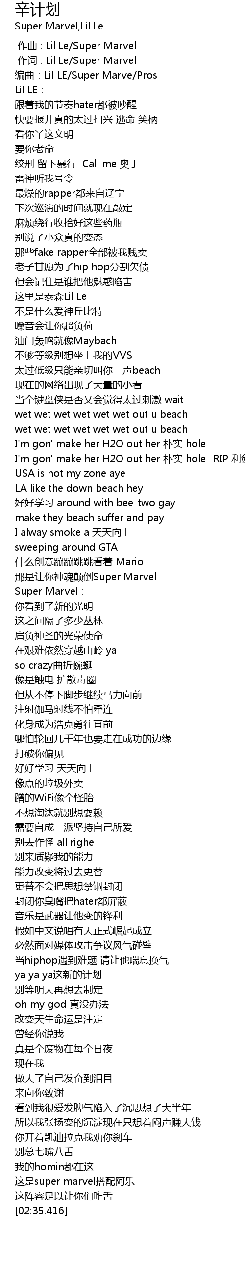 | [00:01.000] | 作词 : Lil Le/Super Marvel |