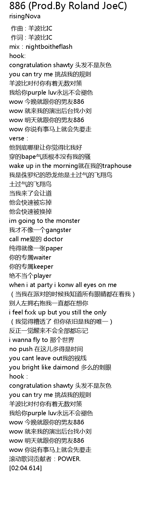 | [01:54.134] | wow 明天就跟你的男友886 |
