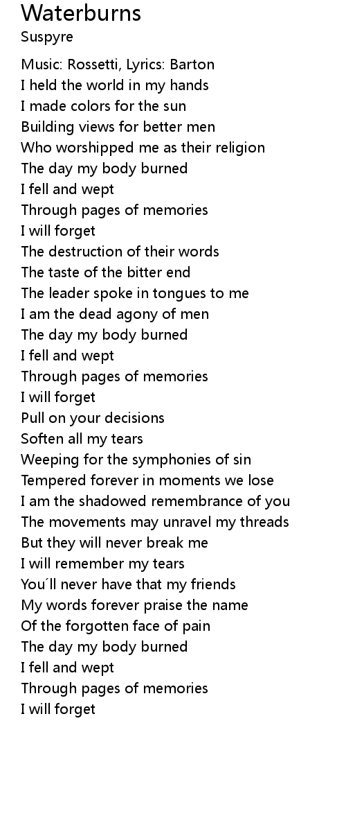 | Song | Waterburns |